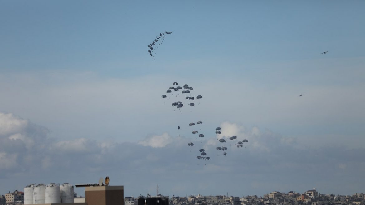 Over the past two weeks, more than 500 bundles containing hundreds of thousands of meals have been airdropped into the enclave by countries such as the United Arab Emirates, Jordan, Egypt and France, as well as the U.S. On Tuesday, a ship packed with almost 200 metric tons of food set sail for the Strip from Cyprus. Facilitated by the World Central Kitchen, an NGO that provides food aid, the ship is set to reach the enclave’s shores on Thursday, though it is unclear how it will unload with no pier or harbor.