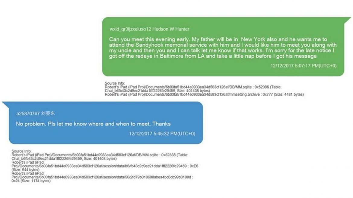 ‘Can you meet this evening early,’ Hunter Biden asked Yadong Liu, CEO of CEFC Global Strategic Holdings in a poorly punctuated text message the evening of Dec. 12, 2017.