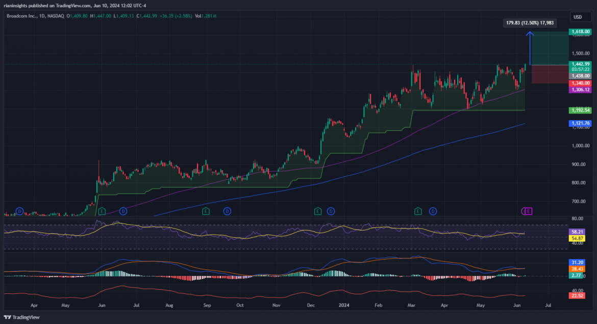 Home Investing News Long AVGO June 21 $1,450 Call option: Bullish momentum reinforced ahead of Q2 earnings