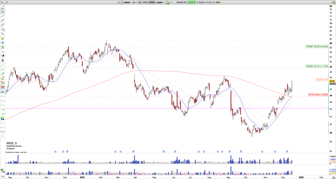 Investing News Long BRZE: Braze Inc. Breaks Out After Strong Q3, Bullish Setup Targets $50 and Yearly Highs by December 17, 2024 written by December 17, 2024 0 comment 0 FacebookTwitterPinterestEmail previous post RIL set to end 2024 in red for the first time in a decade: what investors need to know next post Long KVYO: Klaviyo Inc. Breaks New Highs, Strong Q3 Performance Fuels Bullish Momentum Related Posts Asian markets open: Nikkei, Hang Seng fall on... June 12, 2025 Aluminum and steel tariffs spark rise in secondary... June 12, 2025 Airbus sees aviation boom ahead, global fleet to... June 12, 2025 US-China trade talks and Washington’s decade-long effort to... June 12, 2025 Europe markets open: Stoxx 600 dips as UK... June 12, 2025 UK GDP falls by 0.3% in April as... June 12, 2025 Gordon Brothers buys Poundland; pledges £80 mn for... June 12, 2025 Air India plane crash: London-bound flight with 242... June 12, 2025 Air India plane crash live update: Indian President... June 12, 2025 Copper remains supported for now even as China... June 12, 2025