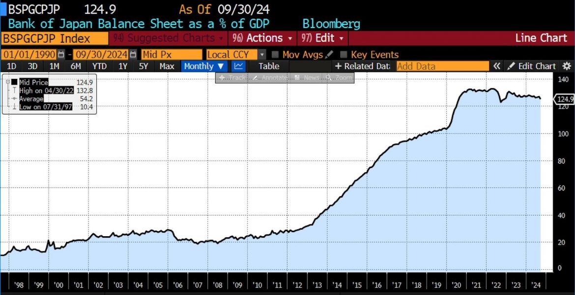 Bank of Japan Balance Sheet as Percent of GDP (1990 – present)