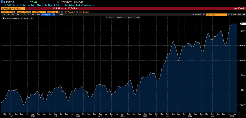 US Department of Energy Retail Price of Electricity Sold to Residential Consumers, 2015 – present