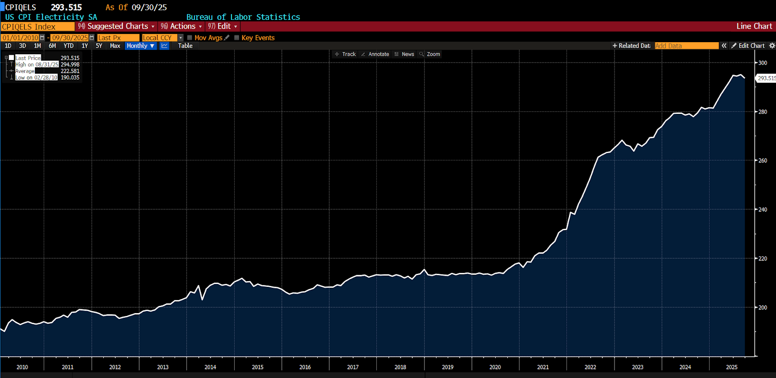 US Department of Energy Retail Price of Electricity Sold to Residential Consumers, 2015 – present