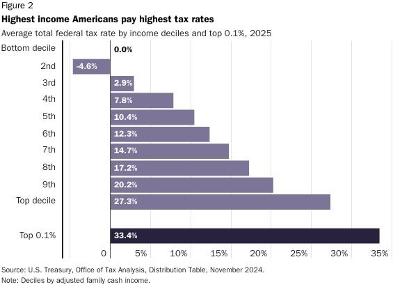 Income tax rates for the poor declined dramatically in the Coolidge period. But today, the lower half of US taxpayers contribute only about three percent of income tax receipts. By contrast, the top 25 percent of income earners contribute over 87 percent of total federal tax revenues. Those in the lowest 20 percent of income earners receive what economists call a negative income tax (Figure 2, courtesy of Cato.org). These households are net recipients of tax revenue, mostly via the earned income tax credit and the child tax credit